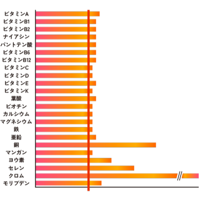 たとえばタンパク質や必須脂肪酸のように、23種類に含まれていない栄養素もありますので、肉、魚、野菜などもバランスよく摂取していただけると幸いです。